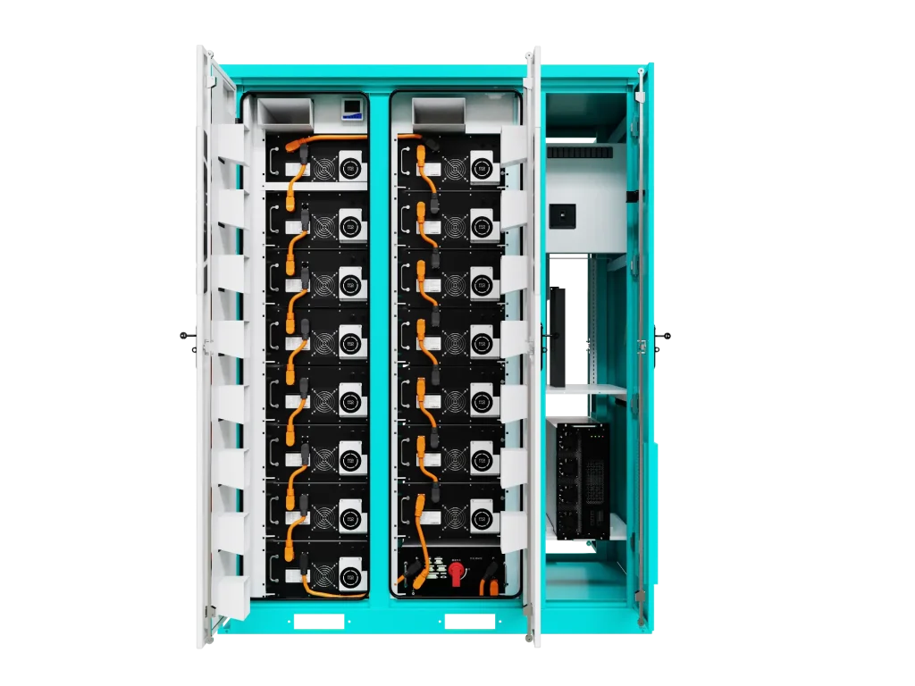 Unsere integrierte Lösung GALAXY 215 AIO-2H ist mit einem EMS, einem 100 KW Dreiphasen-PCS (Bidirektionales AC-DC), einer 215 KWH Lithiumbatterie und einem UPS für die Black-Start-Funktionalität konfiguriert. Dieses Grundmodul ermöglicht den nahtlosen Aufbau eines skalierbaren Systems, das in der Lage ist, über AC-Kopplung bis zu 1 MW PCS-Leistung und 2,15 MWH Kapazität in einem Energiespeichersystem zu erreichen.