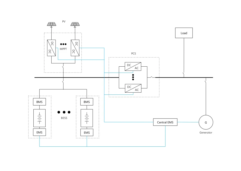 FFD POWER bietet auch ein robustes Energiemanagementsystem (EMS), um die Energieverteilung zwischen verschiedenen Energiequellen wie Solar, Dieselgeneratoren und Batteriespeicherung intelligent zu verwalten. Das EMS optimiert das Stromschalten zwischen diesen Quellen und sorgt für reibungslose Übergänge und ausgeglichene Stromverteilung basierend auf Nachfrage und Verfügbarkeit, und integriert nahtlos Solar-, Diesel- und Batteriespeicherung für zuverlässige Off-Grid-Stromversorgung.